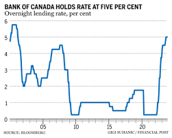 The Bank of Canada has decided to maintain its policy rate at five per cent for the fourth consecutive meeting. In a significant shift, the bank explicitly stated that there won't be a need for further increases if the economy aligns with its forecasts.